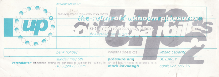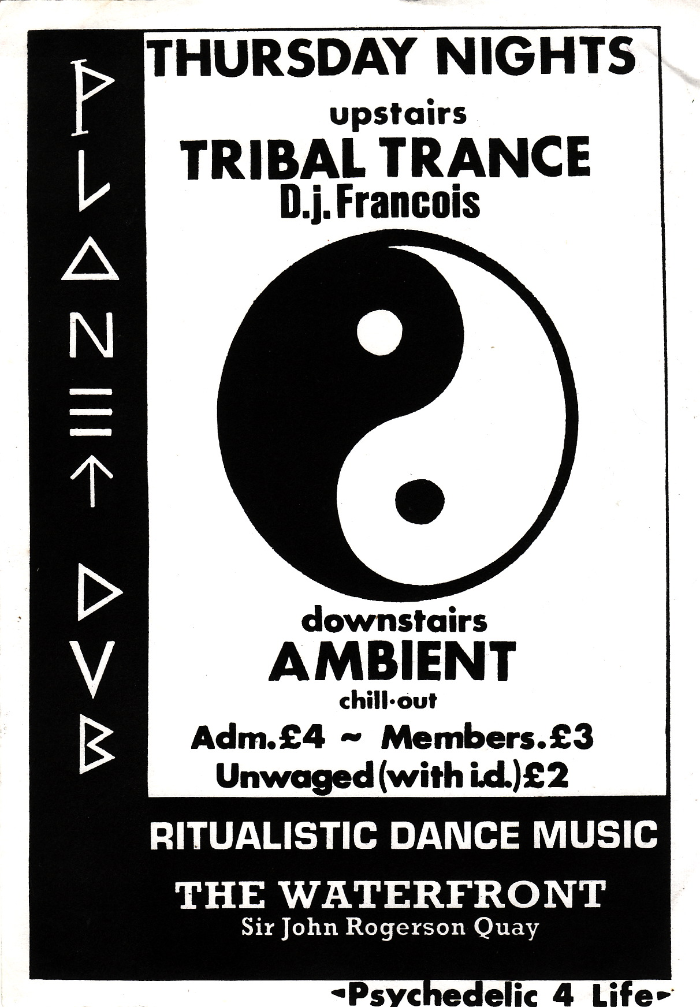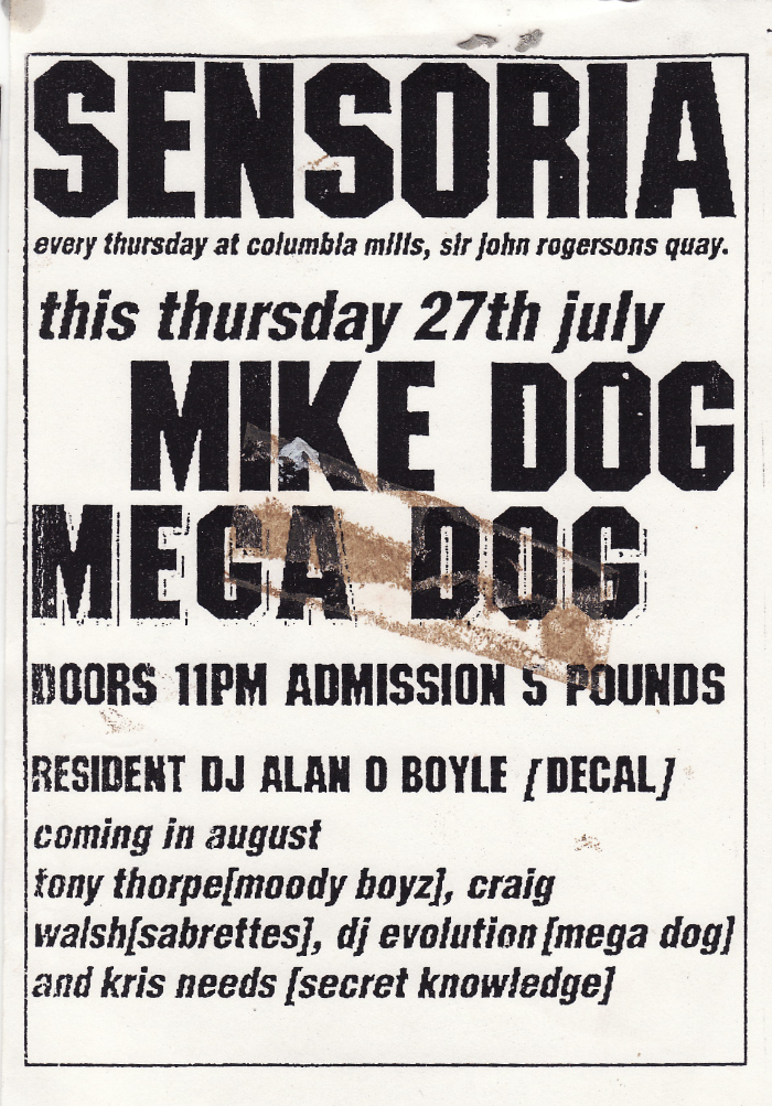 The Mills, based down in Sir John Rogerson’s Quay, became a second home to early house DJs the Beat Club, the Influx Boys (Paul Davis and Johnny Moy), Darren Emerson, David Holmes, DJ Francois and Mark Kavanagh.
