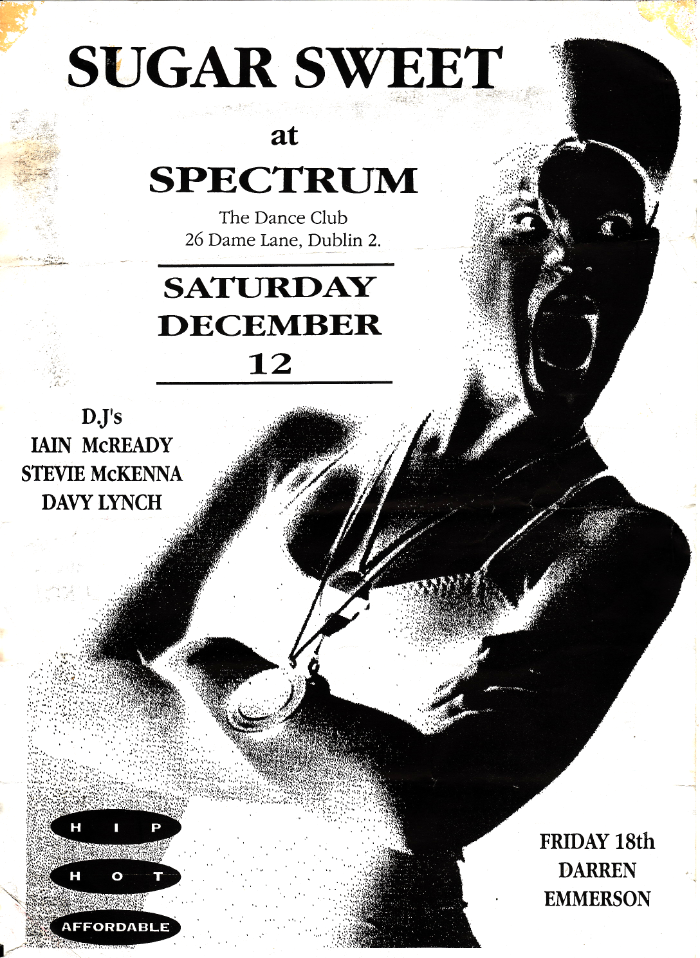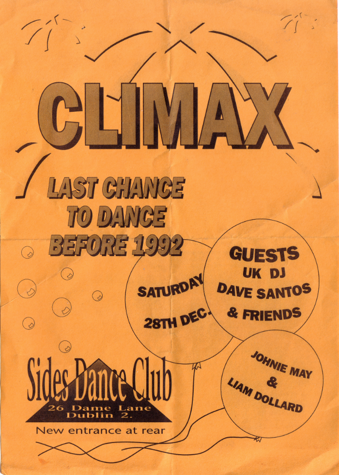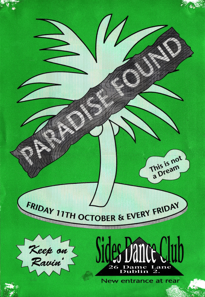 “A favourite Sides memory from that era is Rocky & Diesel playing the Clivilles & Cole remix of Michael Jackson’s Black Or White as an encore. I was dancing to it down near the front door at the Dame Street entrance with a spiky-haired Billy Scurry and Nigel nearby (they were both wearing shorts, you don’t forget these things). The atmosphere was so unparalleled and unprecedented that the hairs on my neck still stand up thinking about it now, almost quarter of a century later.