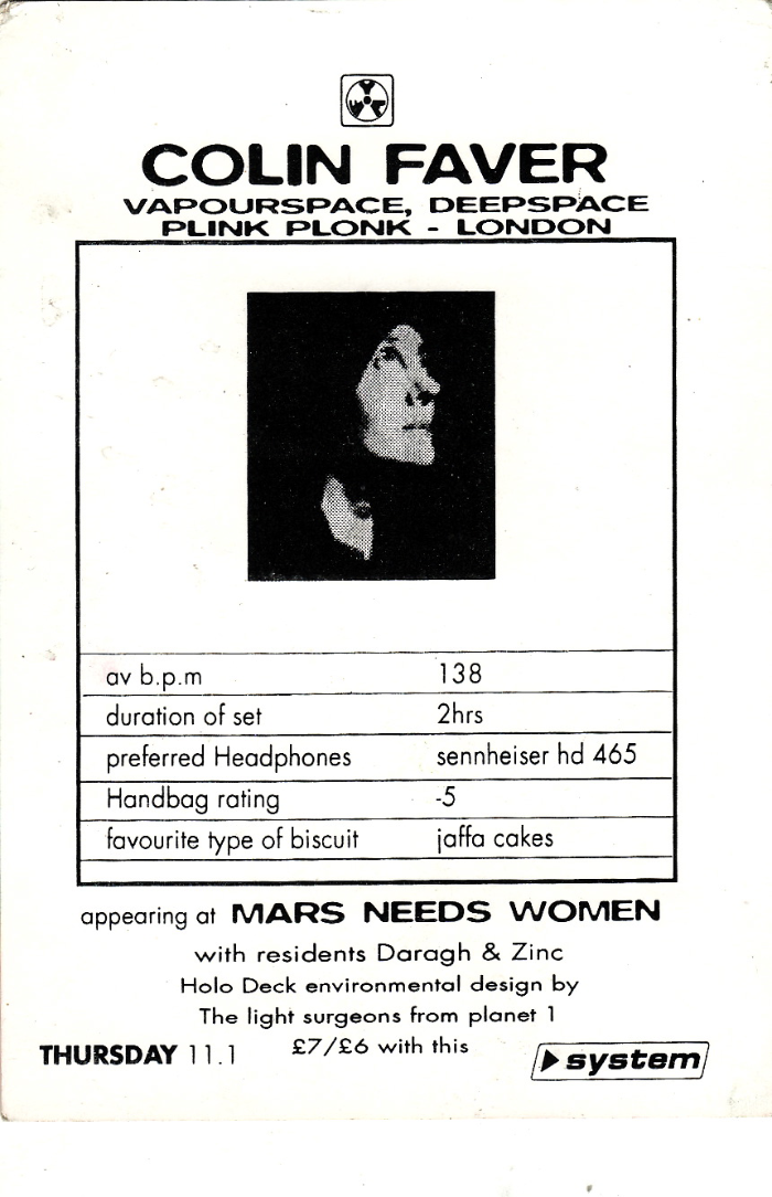 So then, around late summer 1995, he got in touch to say ‘look, I have this set up now. It’s in The System, we’re going to have Mr C playing, and I want you to do the warm up slot’. It was a Friday night, as Tommy Stewart used to play there on Saturdays. What Damien managed to do was convince the club owners to basically fund his Friday nights, which were the Honey nights. He was always very good at convincing anybody to do anything.
